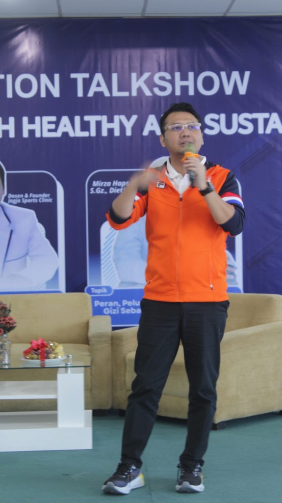 Narasumber pertama, Dr. Mirza Hapsari Sakti Titis Penggalih, MPH., Dietisien, memaparkan materi tentang peran dan tantangan ahli gizi sebagai sport nutritionist. Dalam pemaparannya, beliau menjelaskan kontribusi strategis ahli gizi dalam meningkatkan prestasi atlet melalui pengaturan asupan gizi yang tepat, pemantauan status gizi, serta pendampingan berkelanjutan selama proses latihan dan kompetisi. Selain itu, dijelaskan pula regulasi serta tahapan karier bagi mahasiswa yang ingin menekuni bidang gizi olahraga sebagai sport nutritionist maupun sport dietitian.